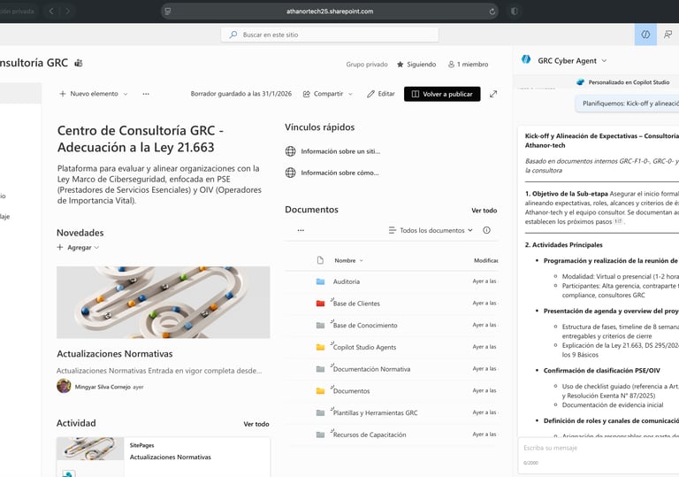 Consultoría GRC es una solución de IA agentic híbrido desplegado en SharePoint, diseñado para automatizar procesos de governance, risk y compliance. Surgido de nuestro I&D en IA aplicada, utiliza modelos ajustados con datos reales para analizar regulaciones, detectar riesgos y generar reportes personalizados, asegurando soberanía de datos y privacidad by-design.